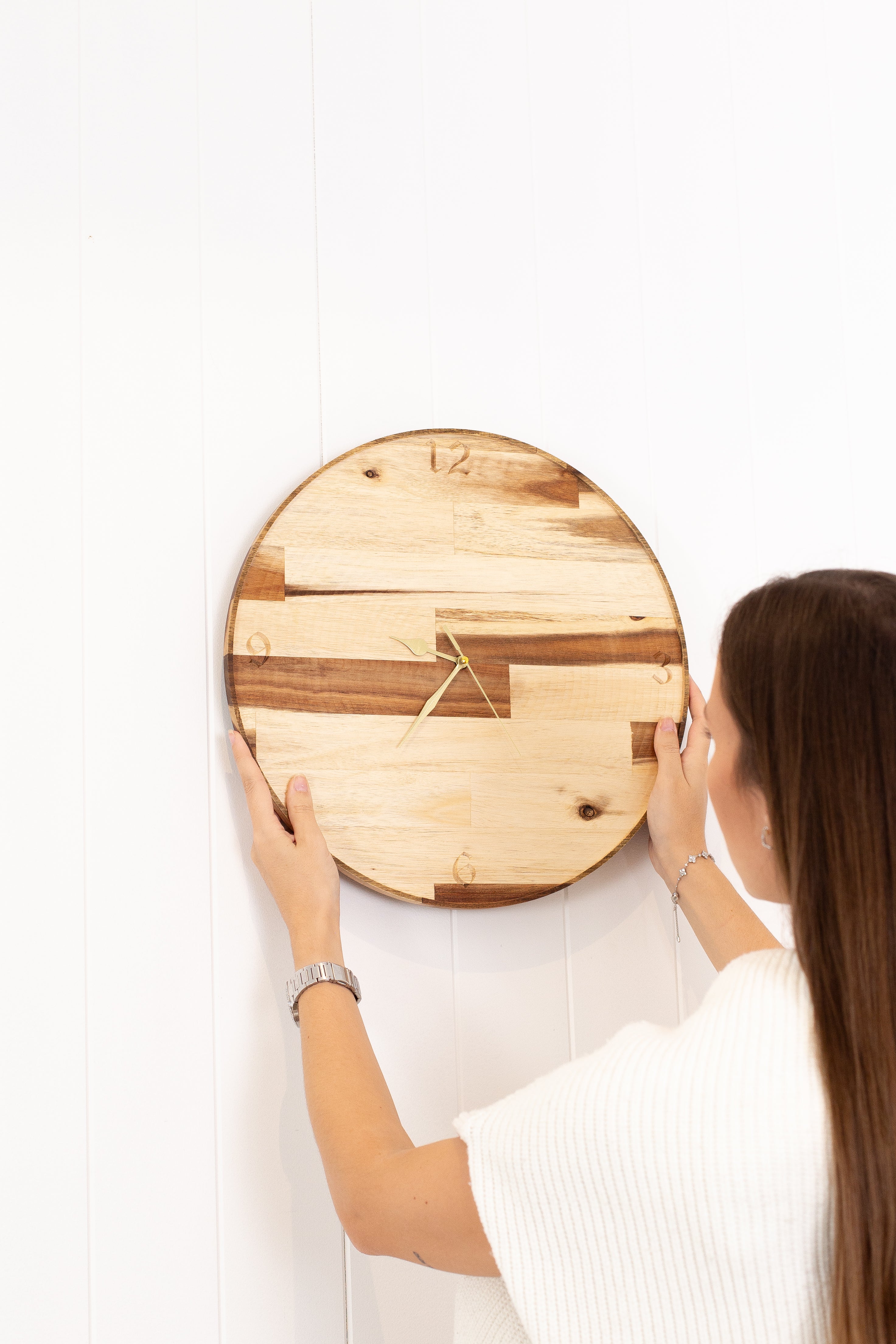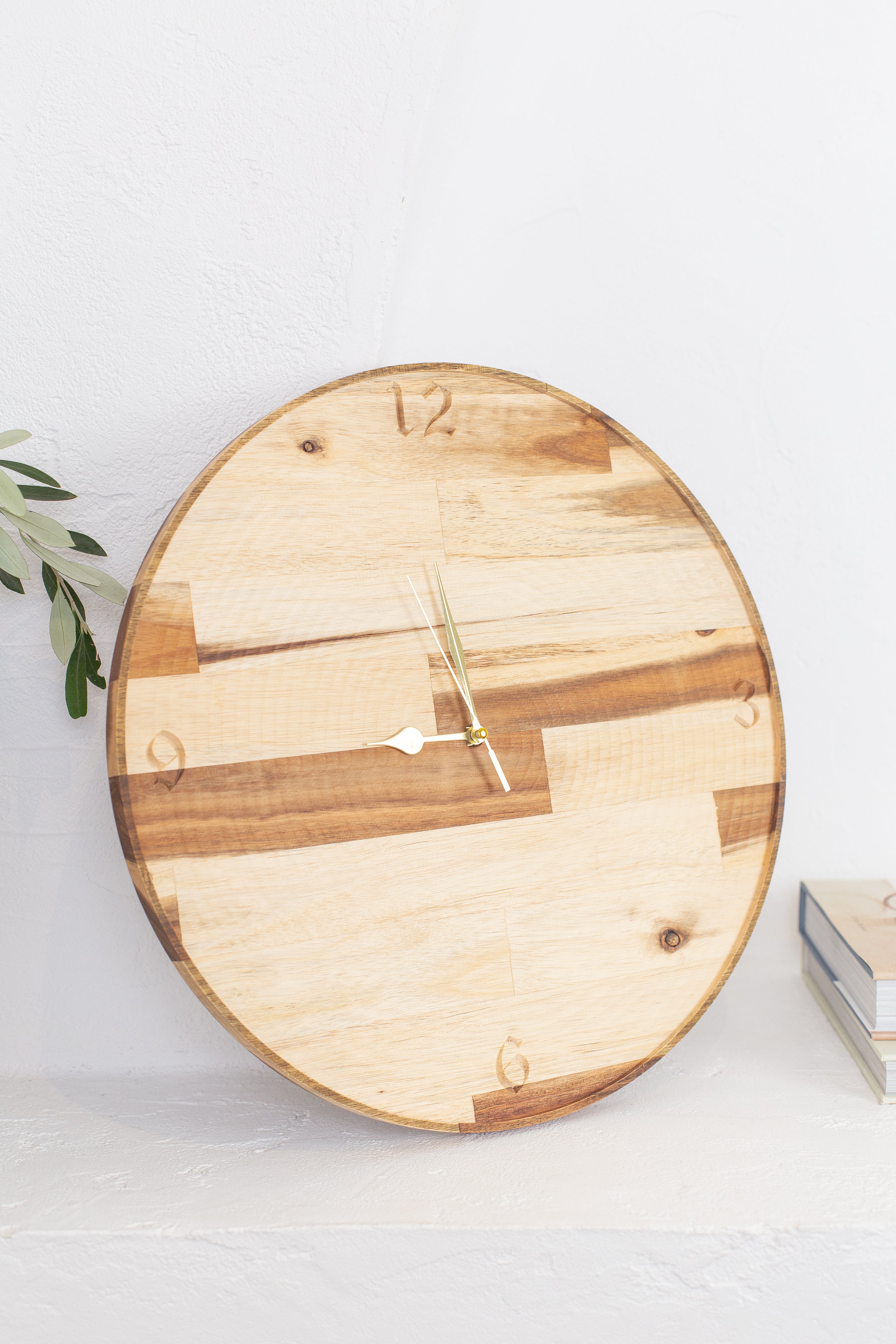 Made from light-colored hardwood, with v-carved dials, this product measures approximately 400mm x 20mm.