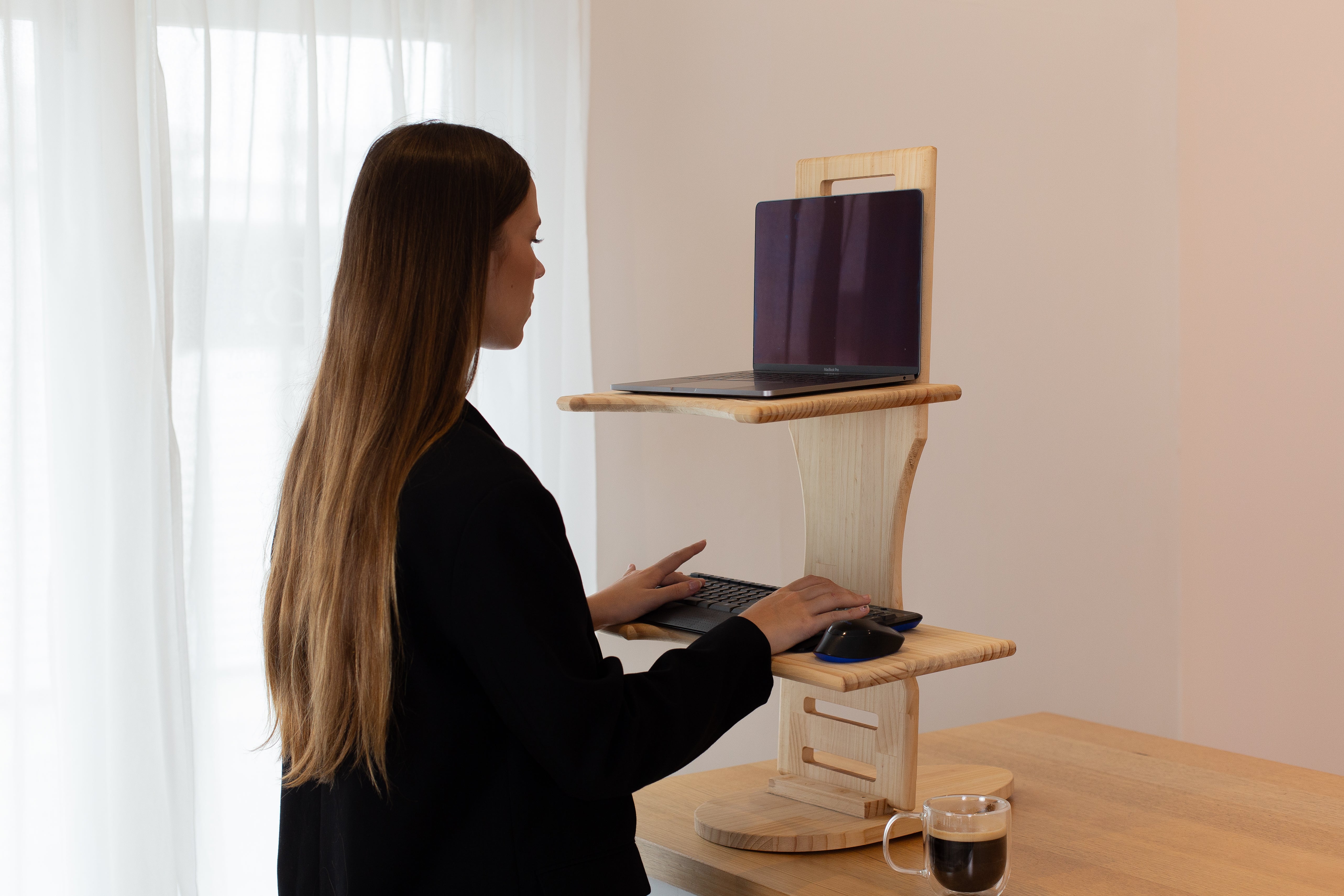 With an easy-to-adjust modular design, you can seamlessly switch between sitting and standing, promoting better posture and productivity. Its compact footprint makes it ideal for apartments, home offices, and multifunctional spaces, while the natural wood finish adds warmth and elegance to any setting.
